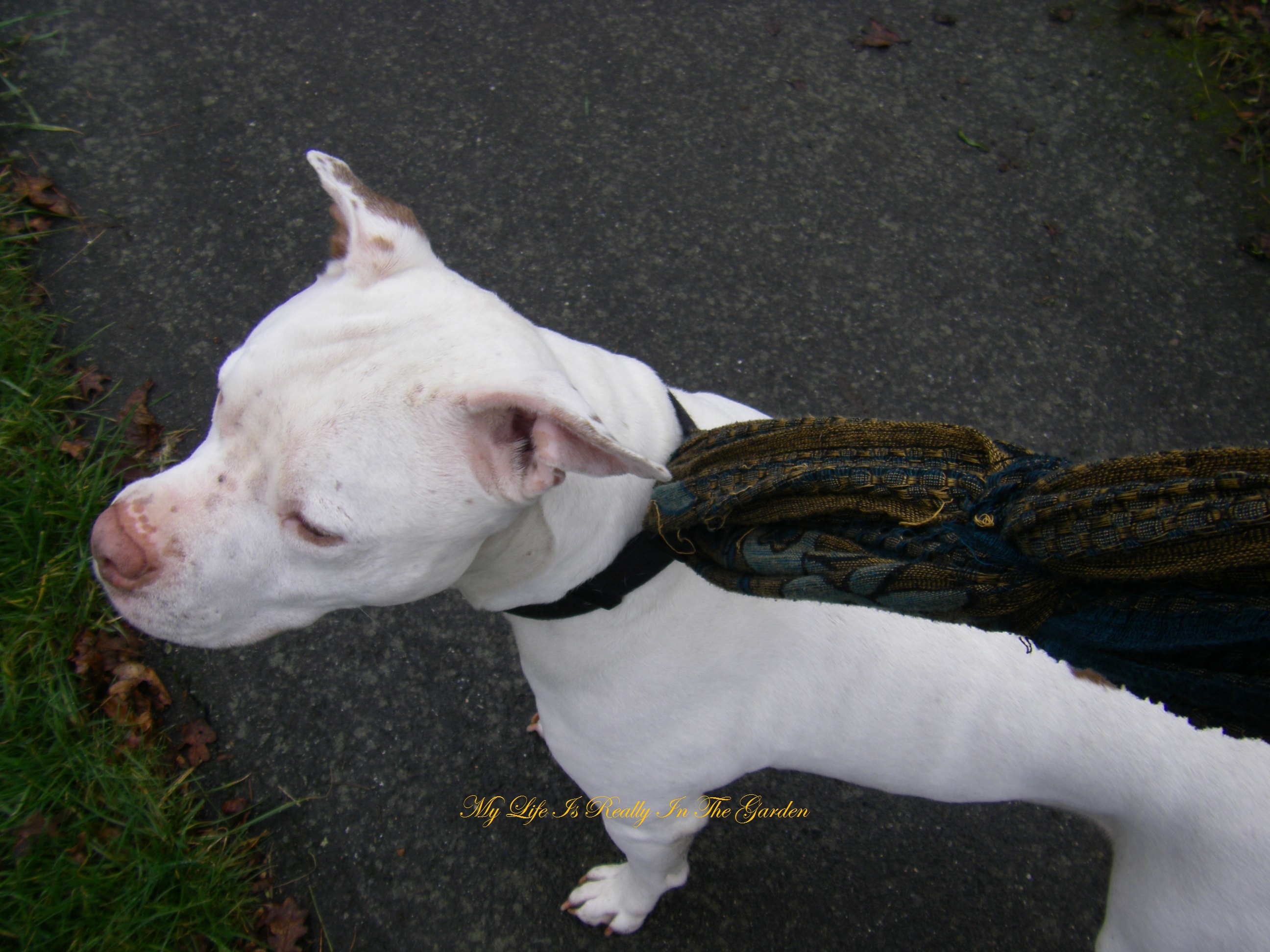 Here is darling little Goose dog! DH & I met this little guy when we were out for a long walk a few days ago … how very sweet .. and in a loving family ..