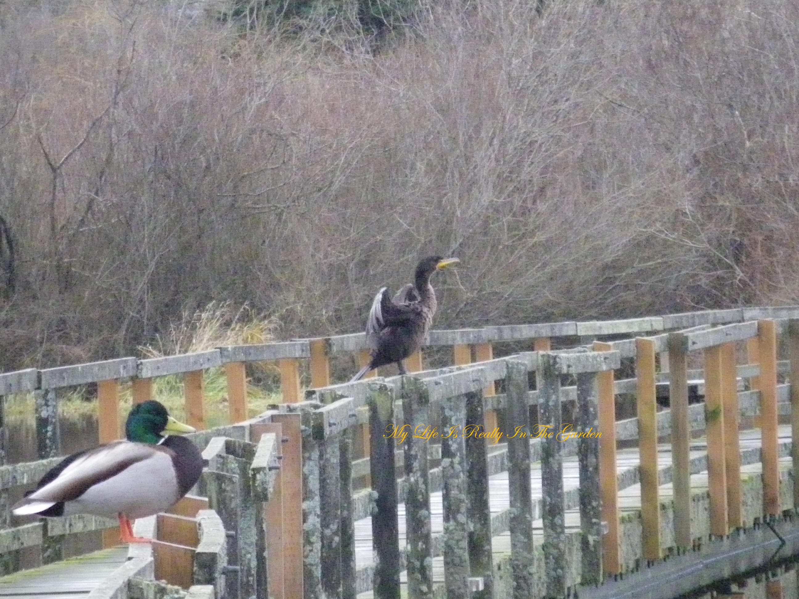 The Cormorants are still hanging around as a group, over by the long walkway at Swan Lake .. they are very elegant ..