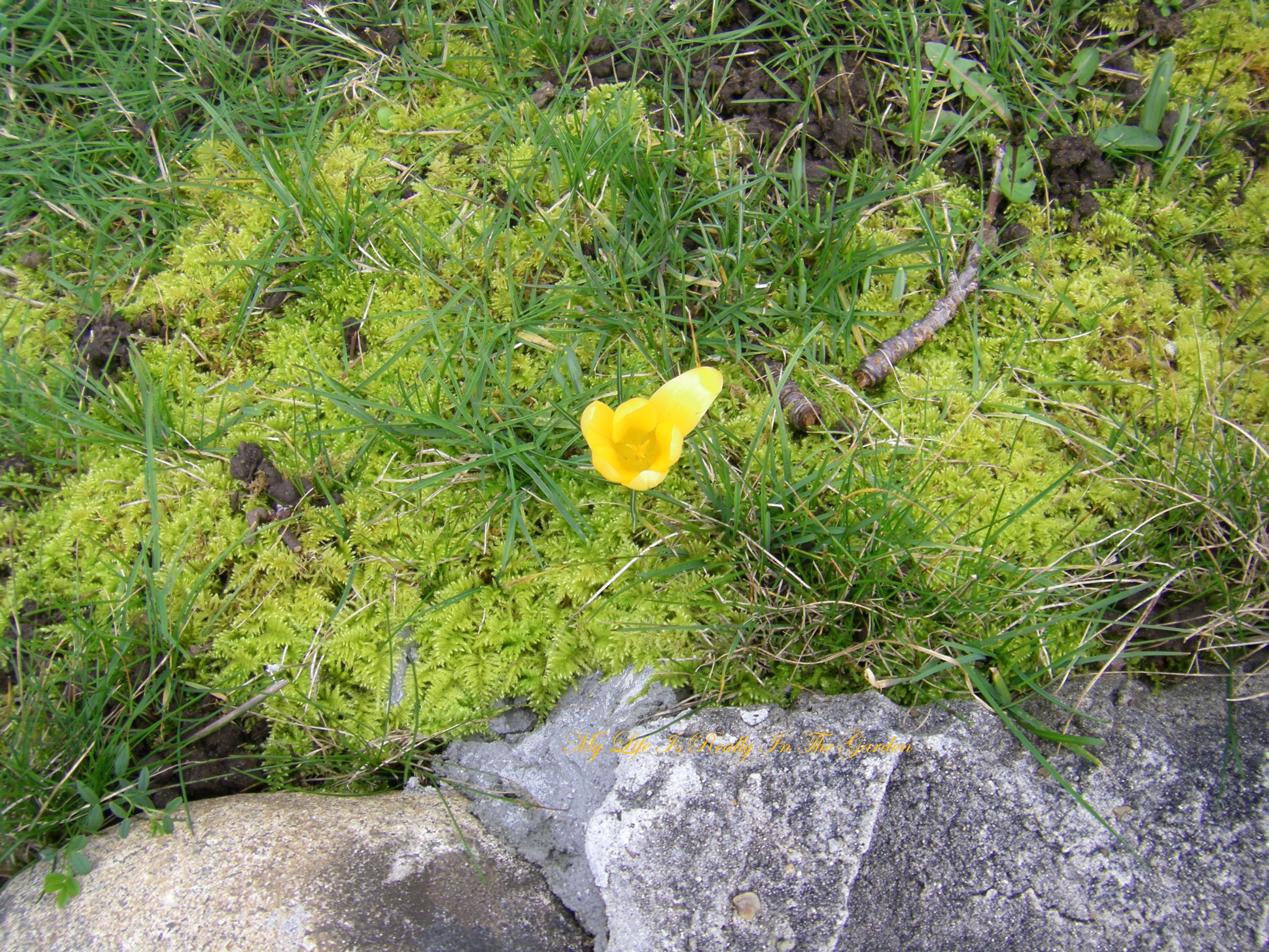 After a lovely cup of tea .. we went outside to see what was happening in the yard .. and I noticed a cheery little crocus that had popped up through the moss .. delightful.