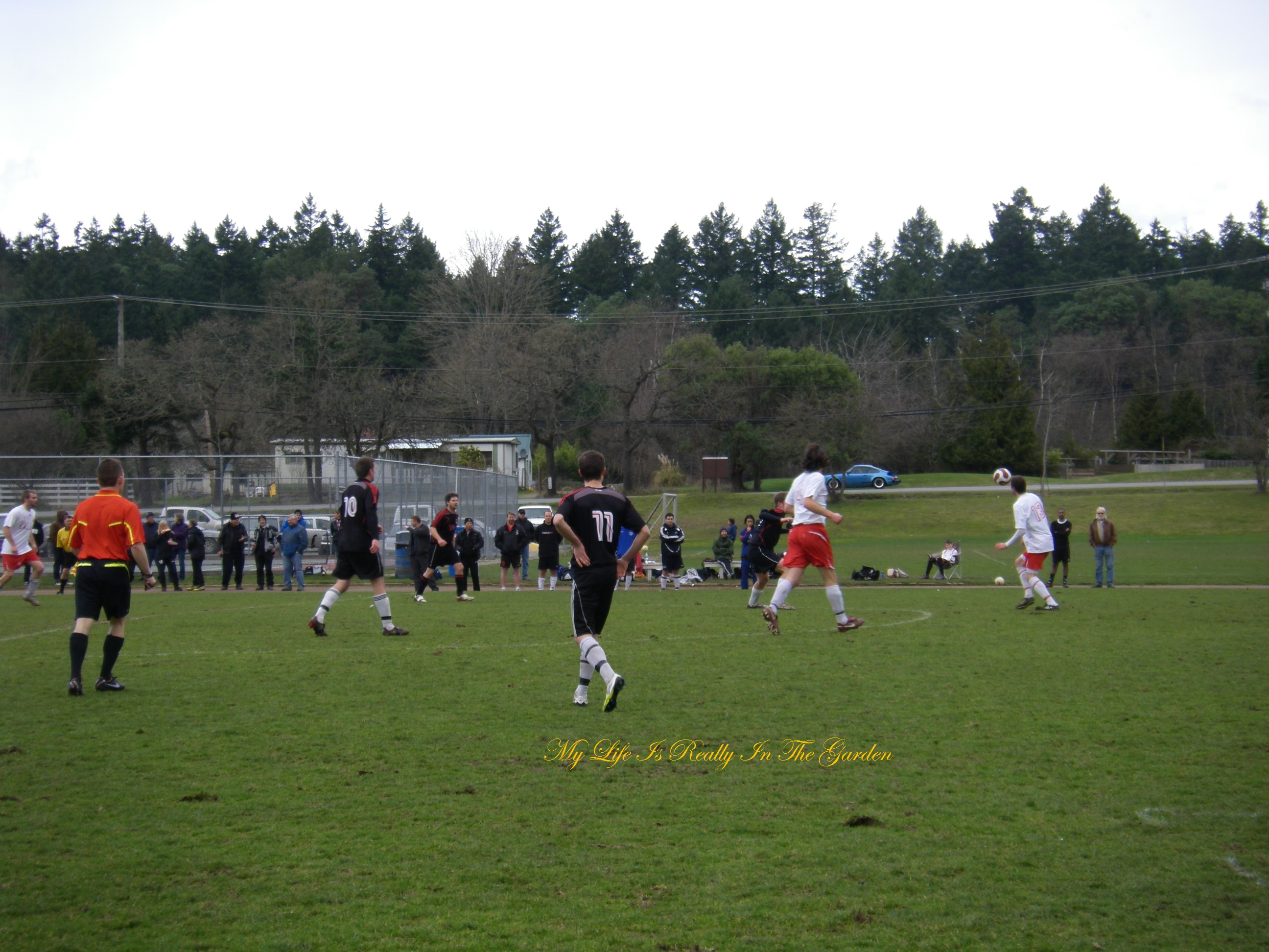 So then our friends invited us to a soccer match .. I’d never been to one and so was looking forward to this. Here … the Salt Spring Island Men’s team were getting ready to start the game.