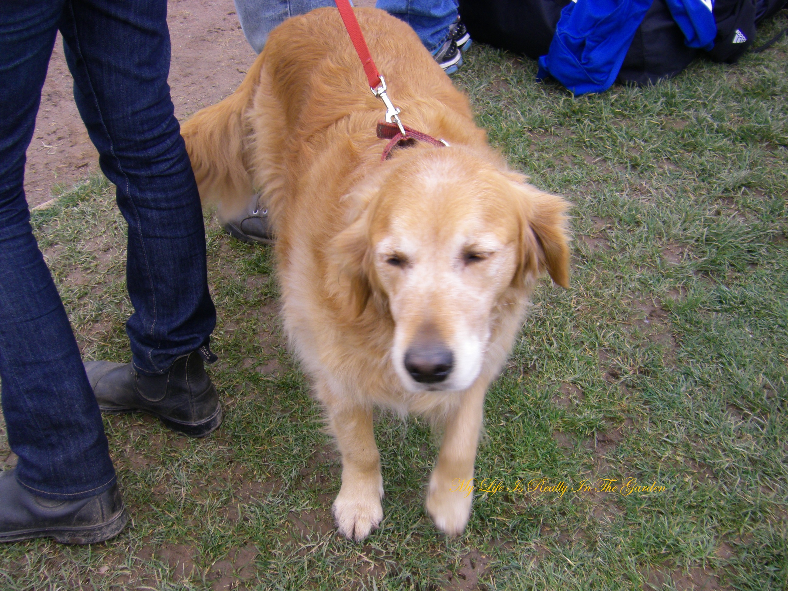 And I was very happy that he brought along little Gemma! Here she is sitting quietly after eagerly chowing down on a huge chicken sandwich. burp We’d just come back for a good little walk and had worked up an appetite.