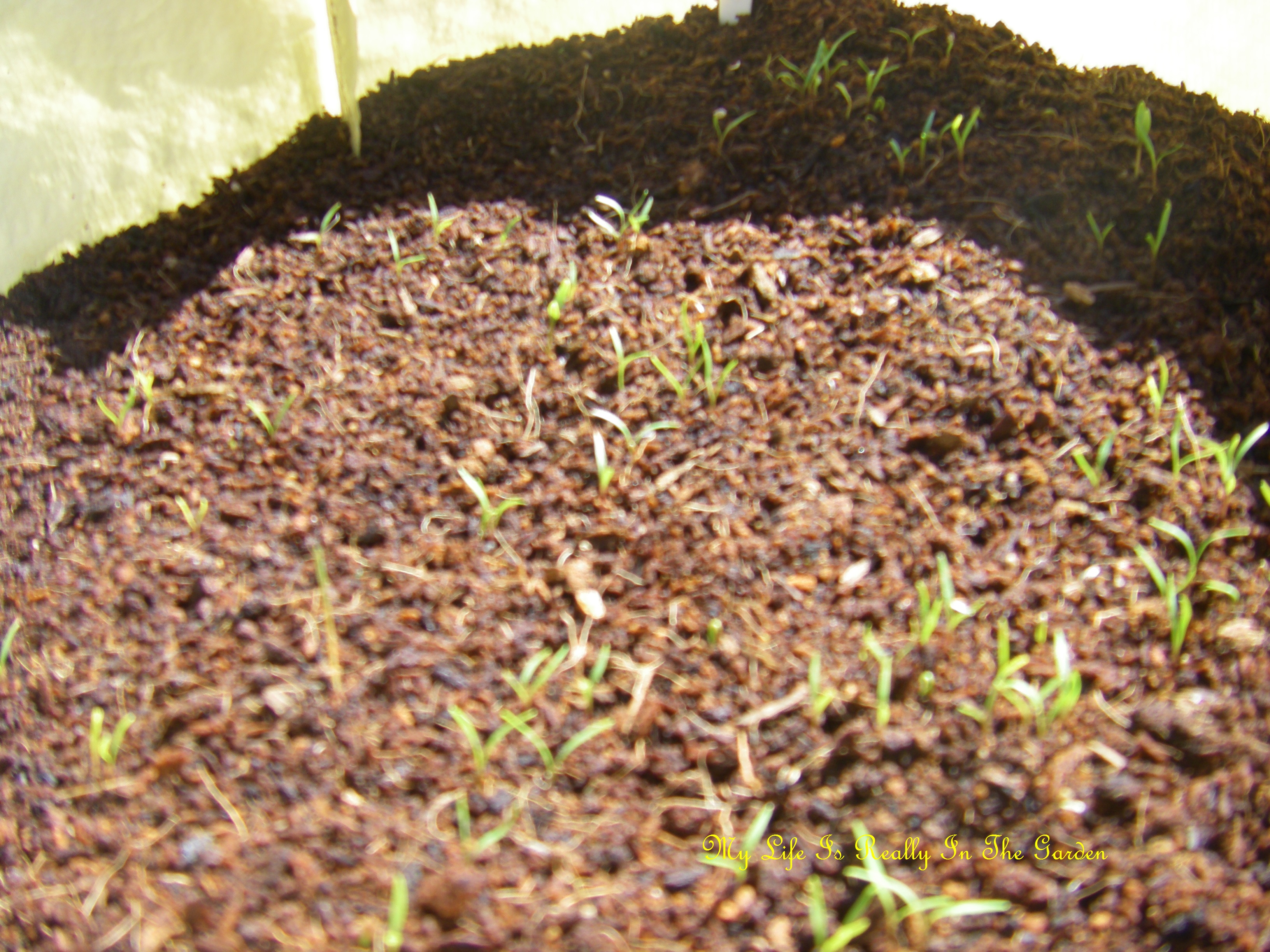 About 3 weeks or so ago, I decided to just trying growing some greens .. the first day of frost here in Victoria isn’t due till November 1 .. so I filled up my new plant containers (a sort of waterproofed fabric with grommets for drainage). This one has green onions and two types of greens .. quite a few have sprouted and I believe that I will be able to harvest some for a few meals.