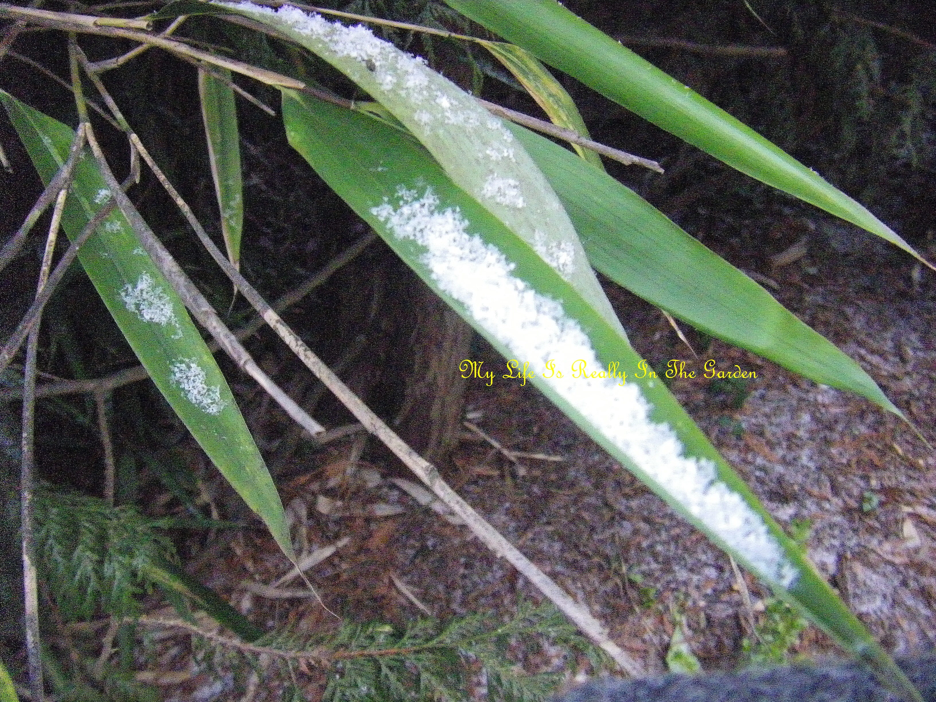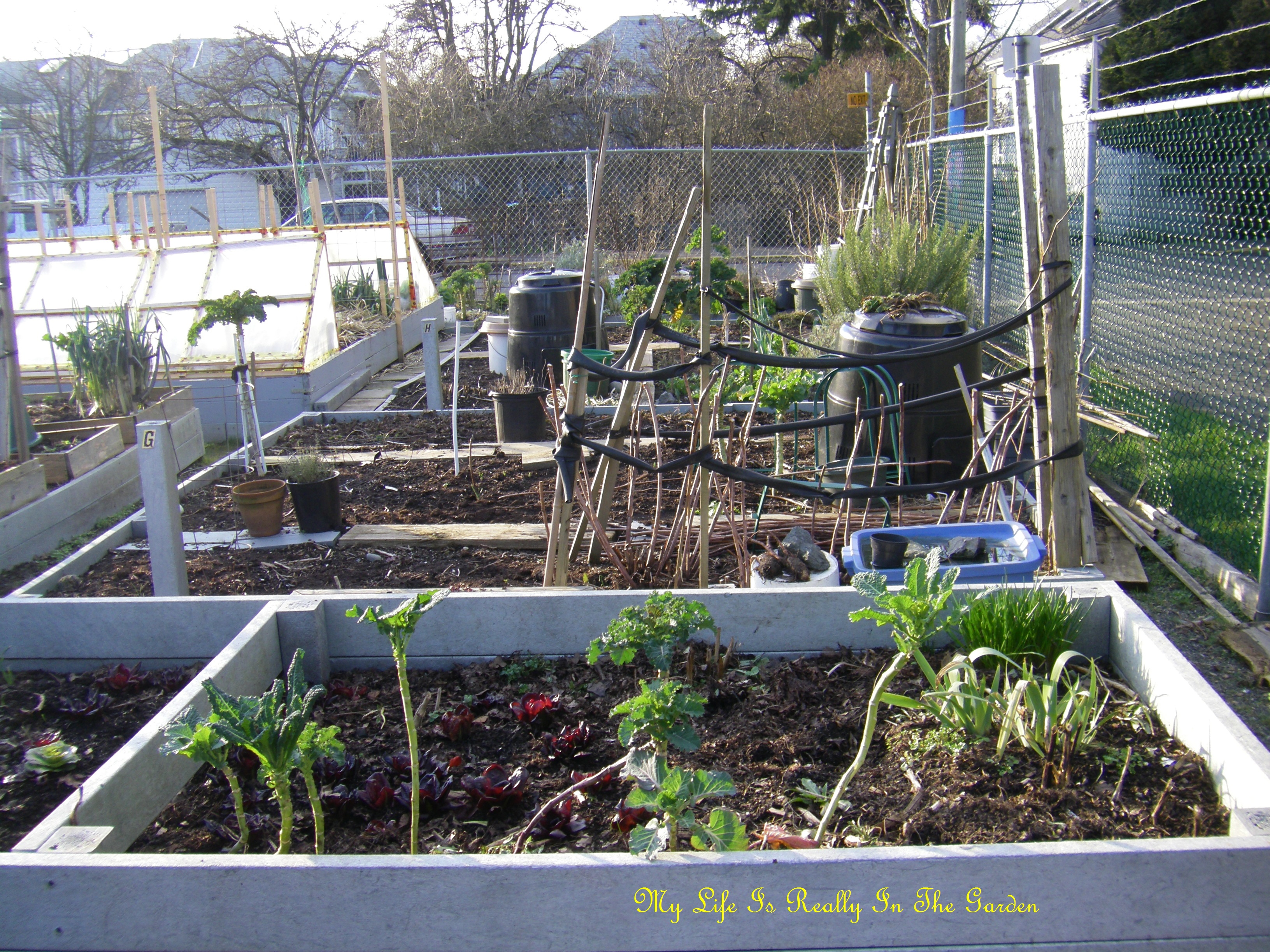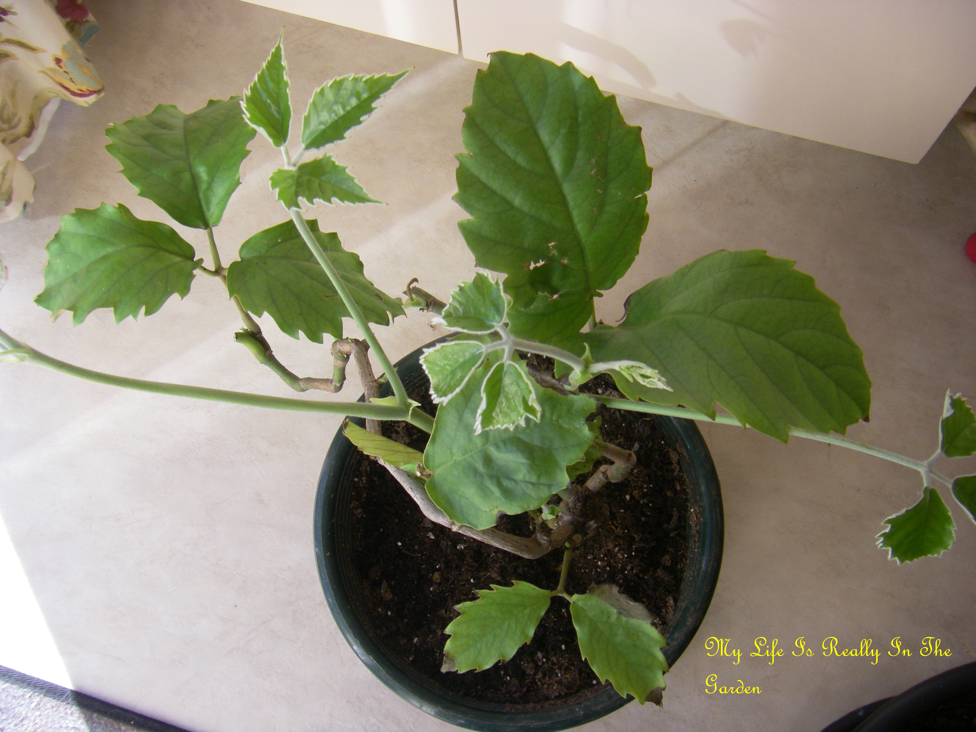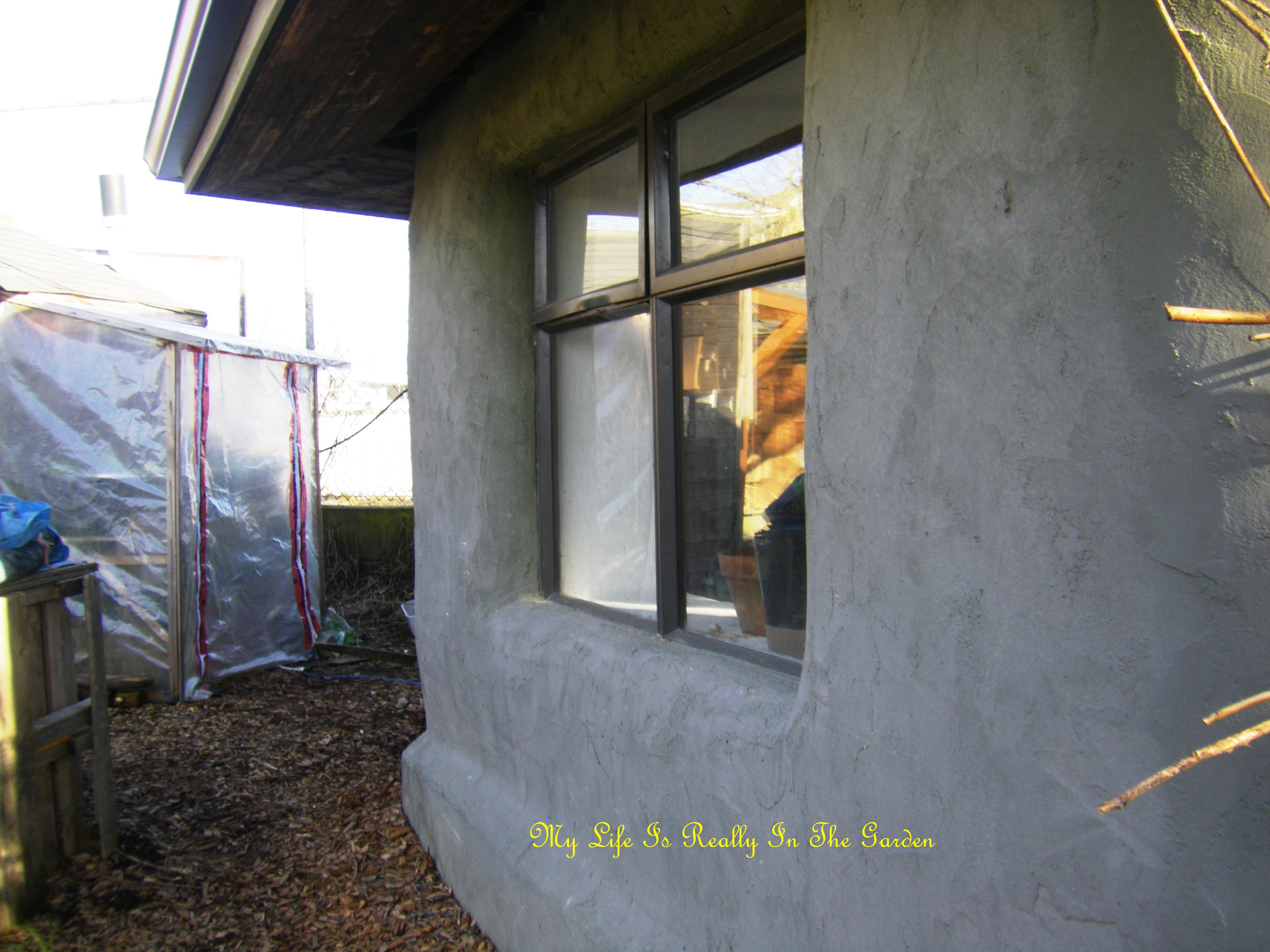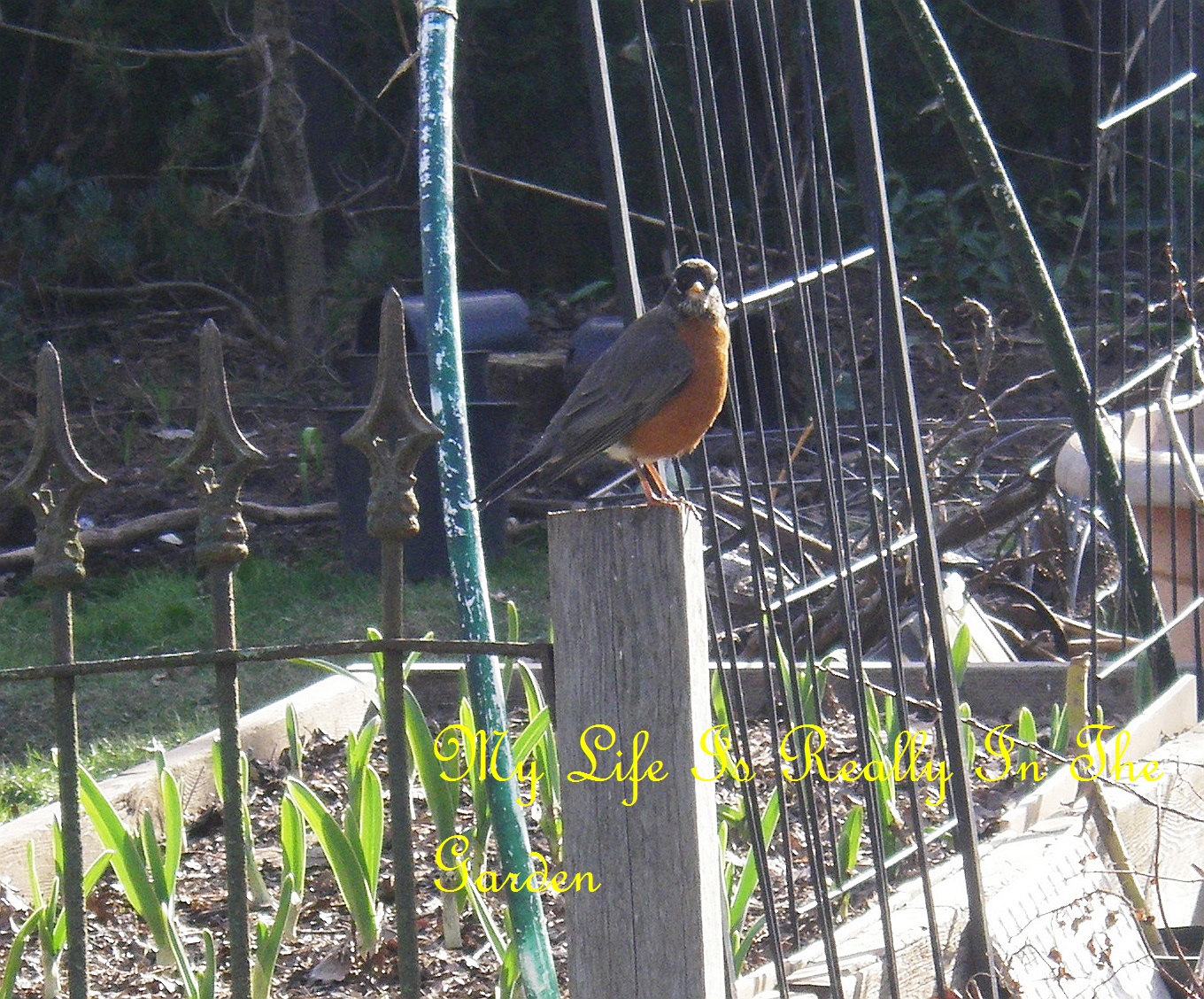 Then I spent a happy few hours, shifting leaf mulch/hay from an area where I had tucked a lot of potted plants into a protected area against the winter. Now it was time to move them aside and dig up the composting material. I drilled holes in the bottom of several waste bins …and later filled them up with the material. Lots of holes so the water can drain and breathe a bit, before I use this lovely stuff throughout the yard.