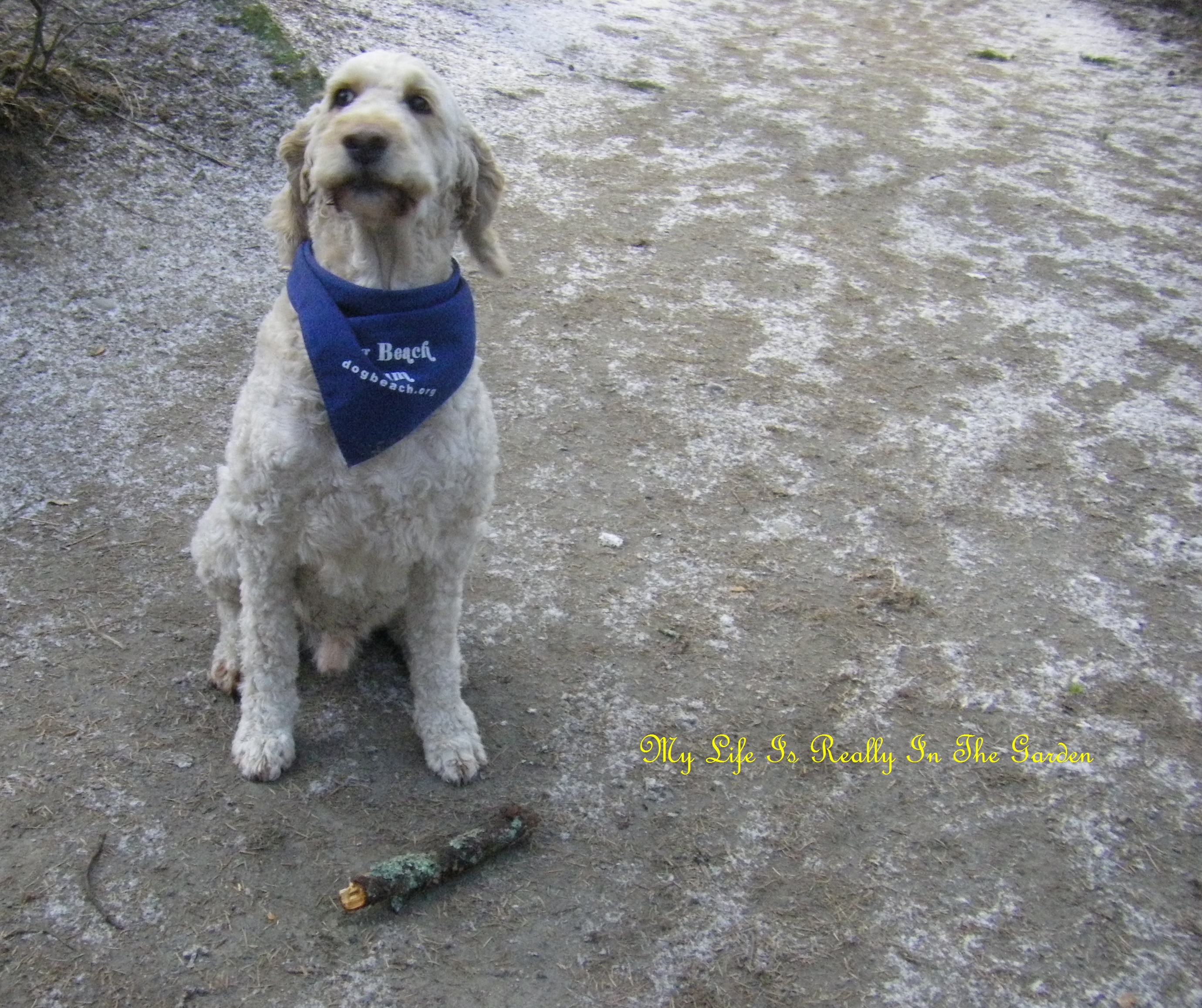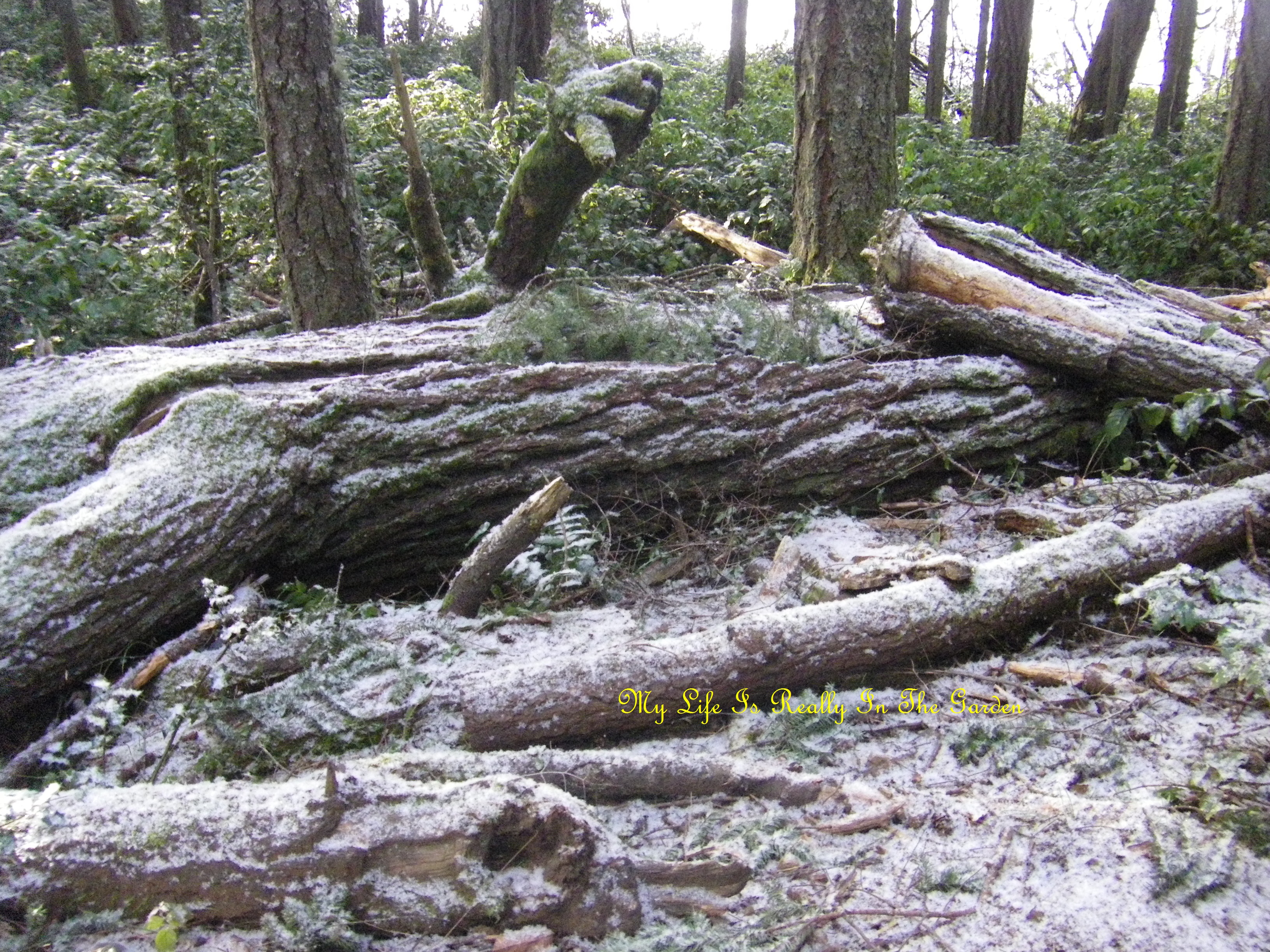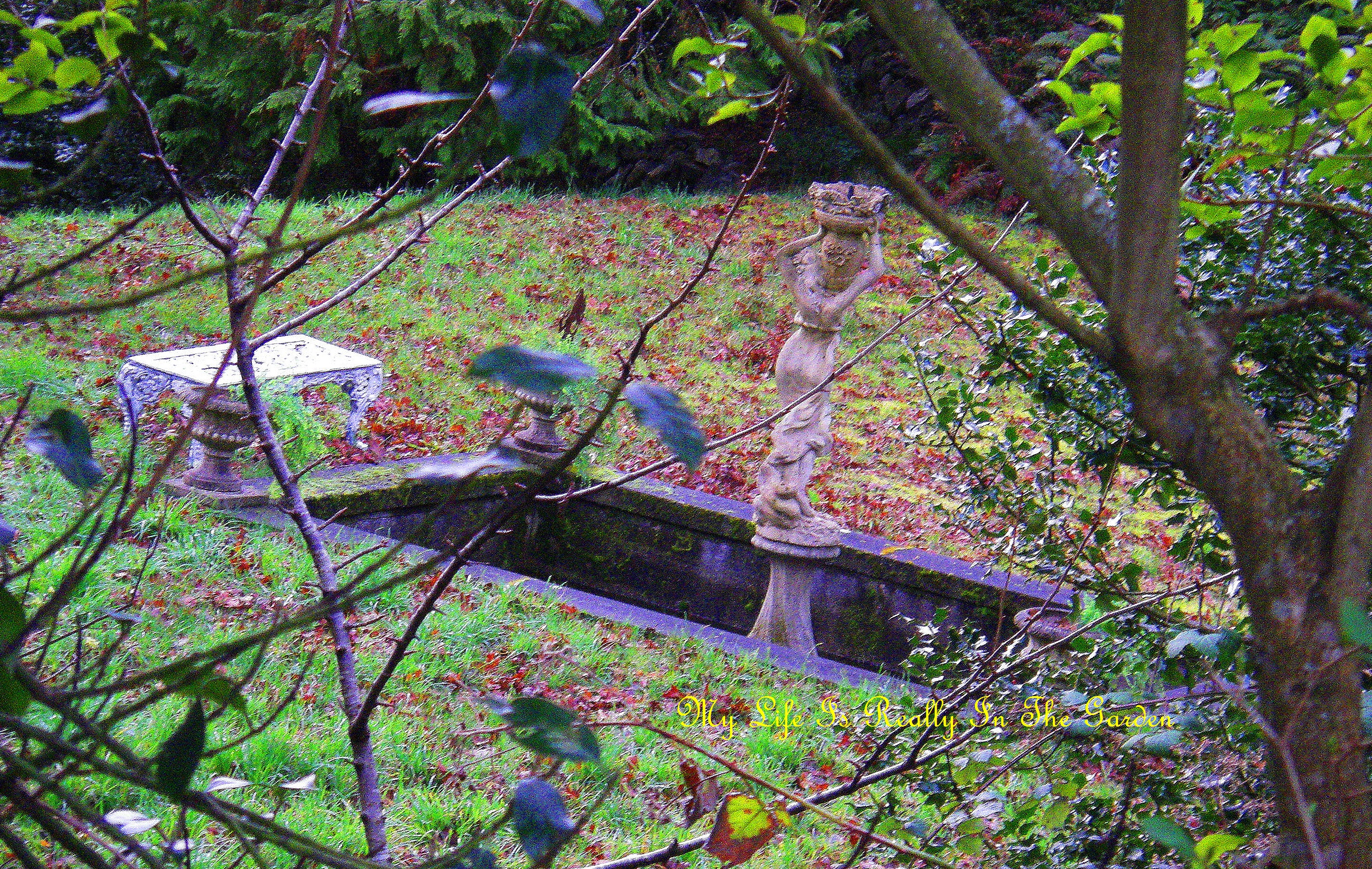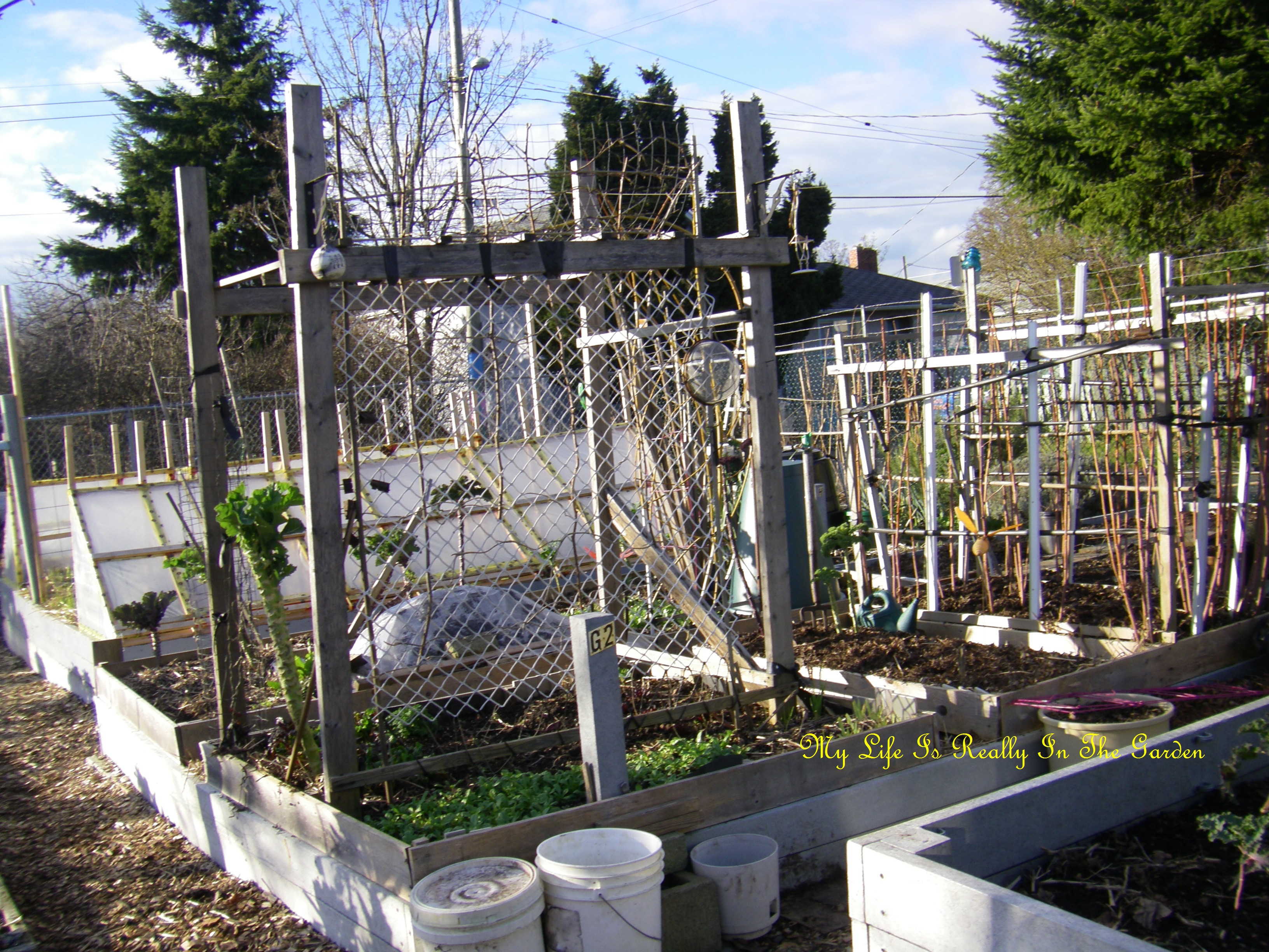 Then I spent a happy few hours, shifting leaf mulch/hay from an area where I had tucked a lot of potted plants into a protected area against the winter. Now it was time to move them aside and dig up the composting material. I drilled holes in the bottom of several waste bins …and later filled them up with the material. Lots of holes so the water can drain and breathe a bit, before I use this lovely stuff throughout the yard.