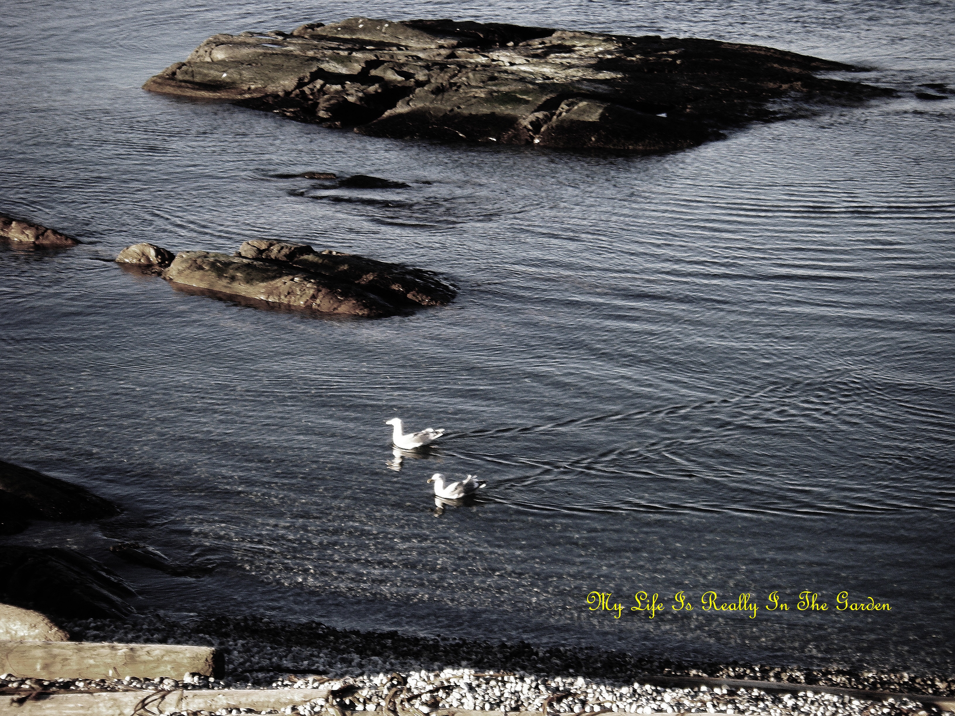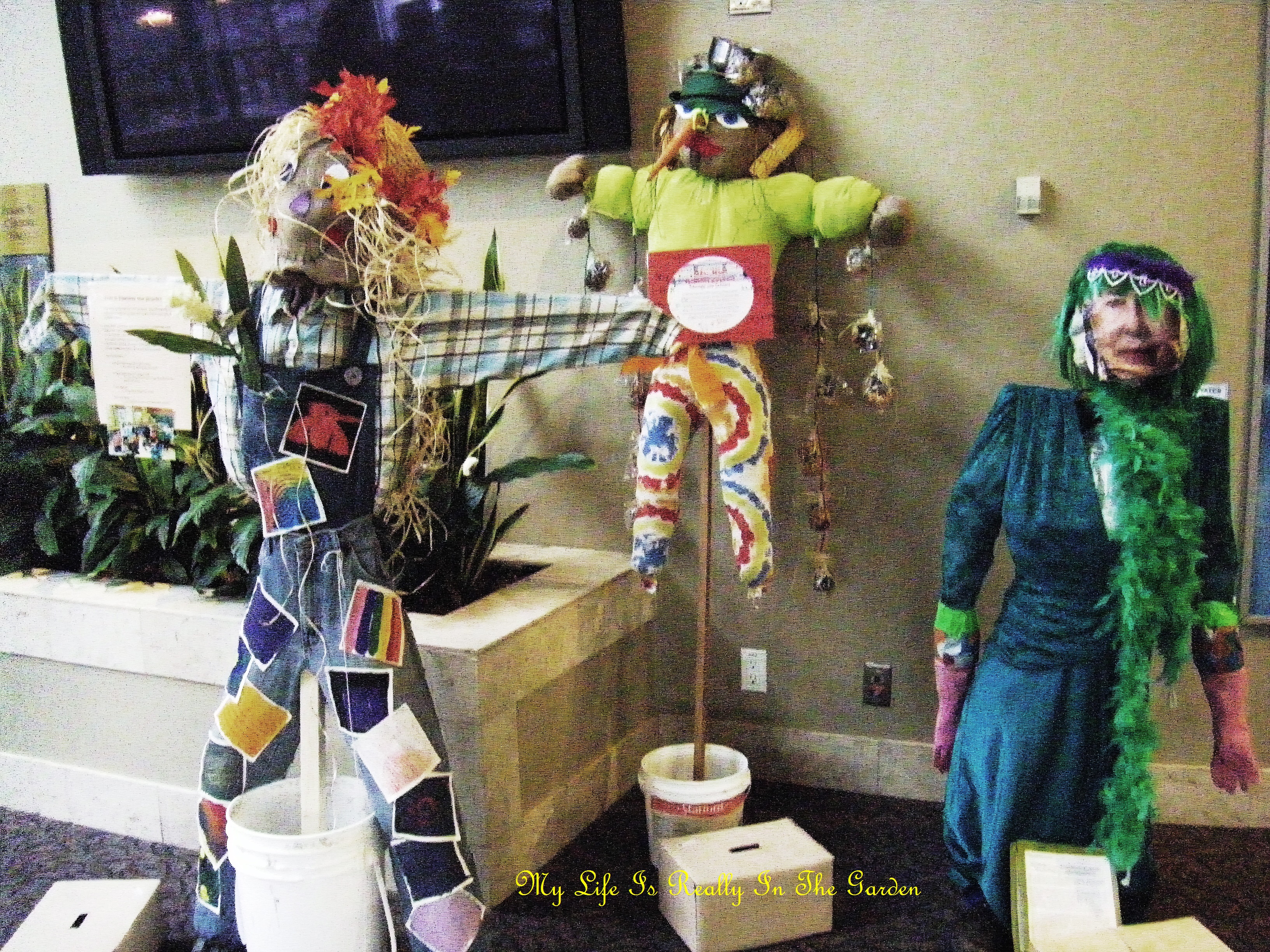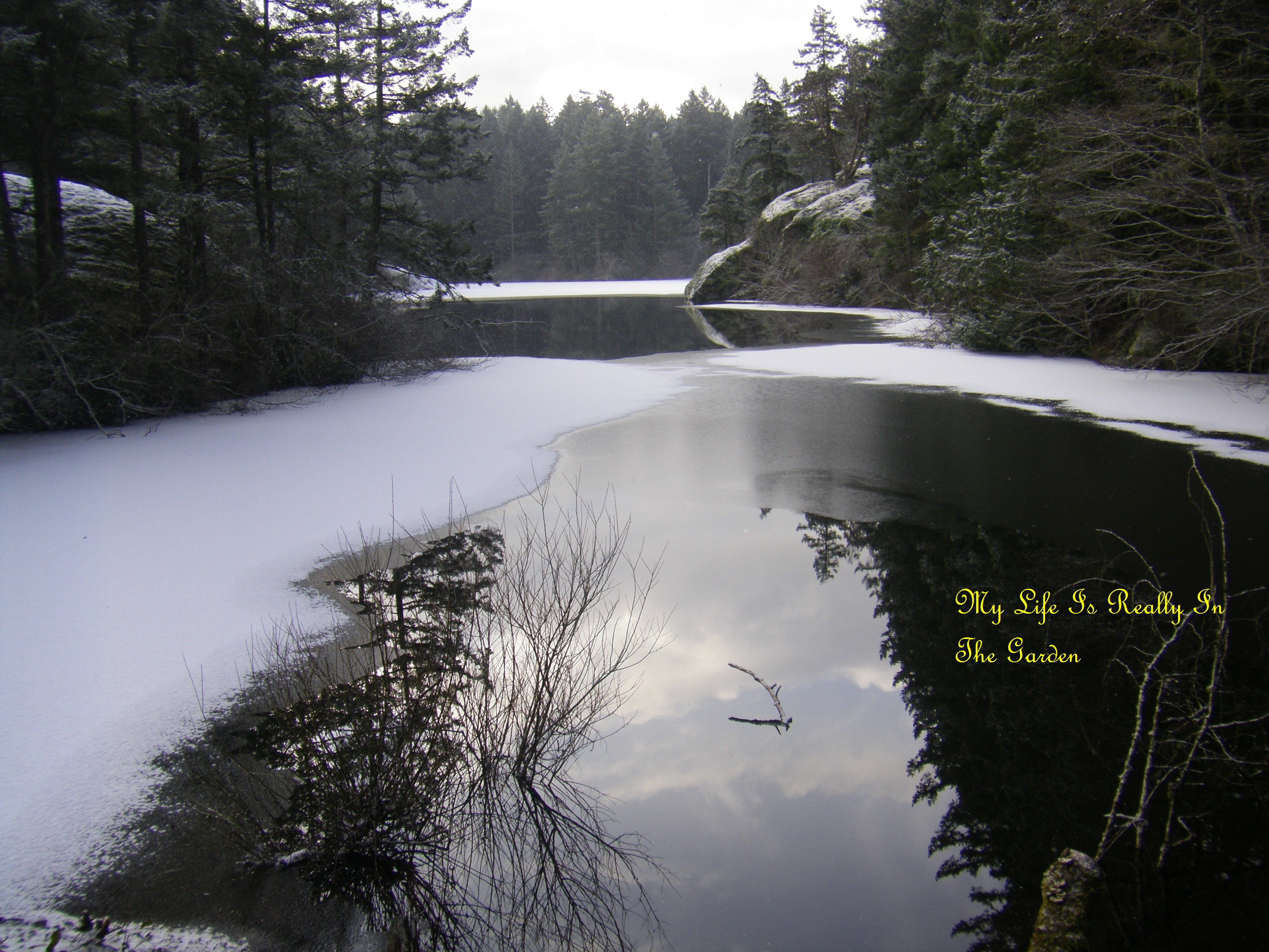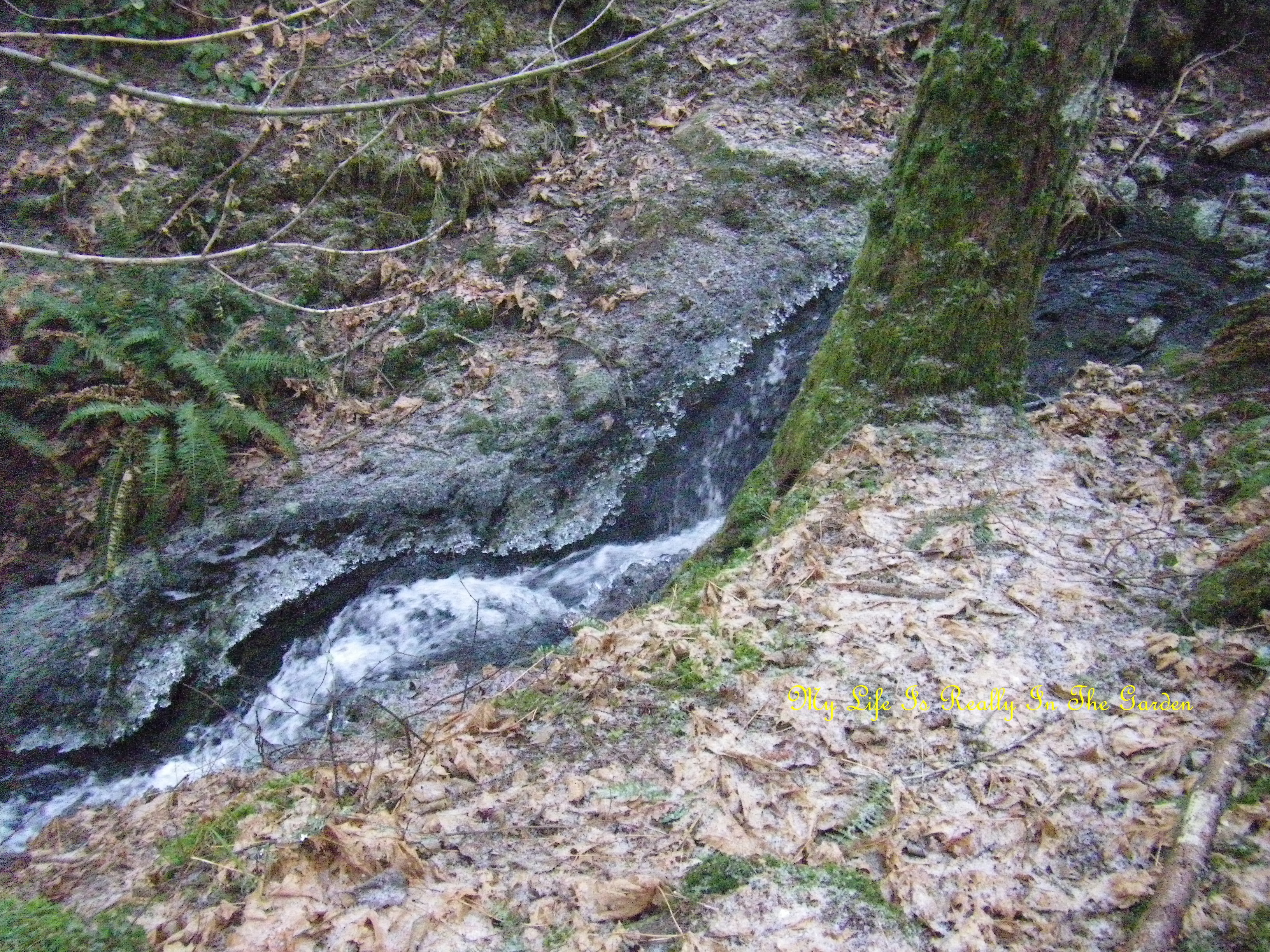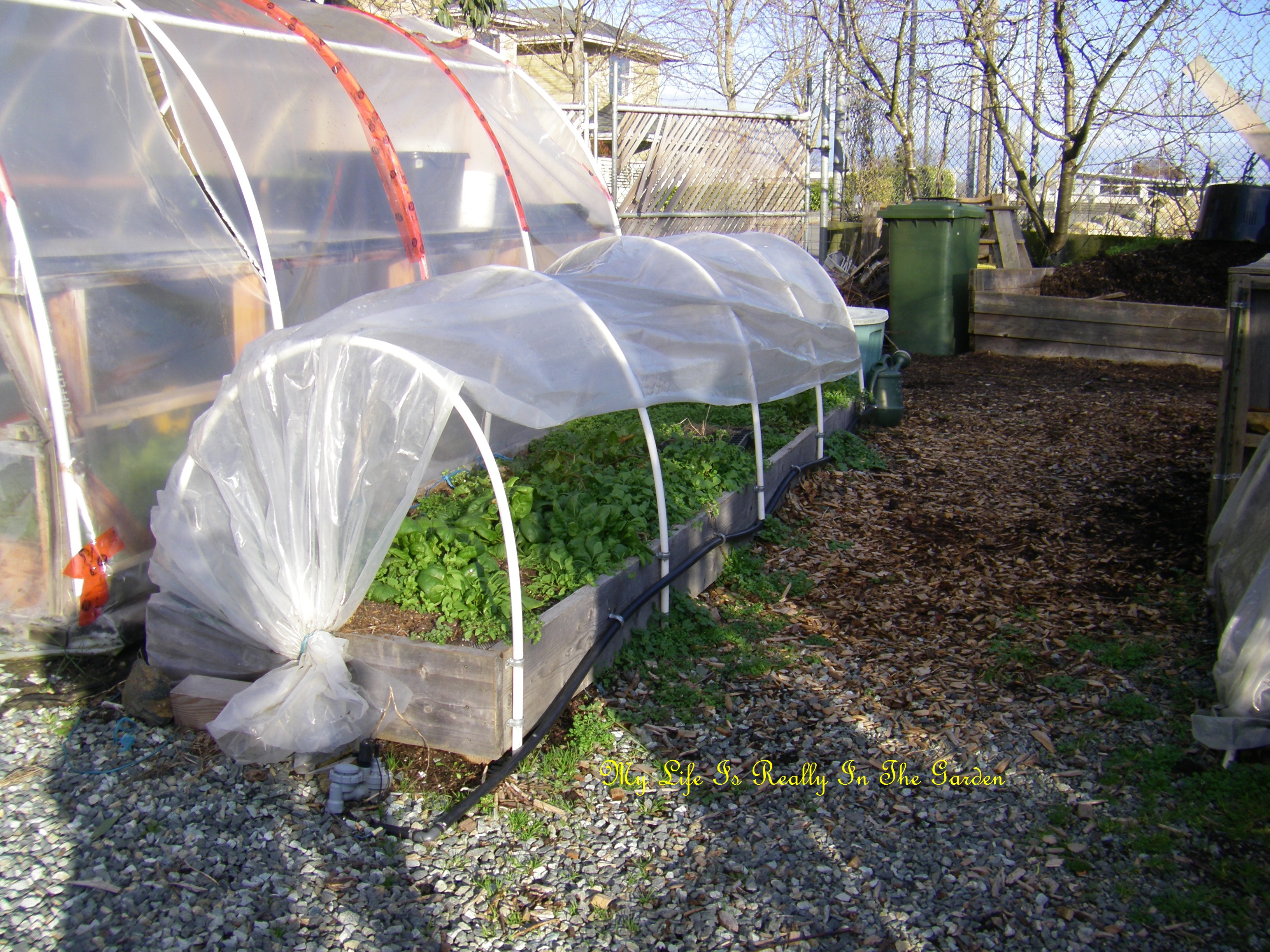 Then I spent a happy few hours, shifting leaf mulch/hay from an area where I had tucked a lot of potted plants into a protected area against the winter. Now it was time to move them aside and dig up the composting material. I drilled holes in the bottom of several waste bins …and later filled them up with the material. Lots of holes so the water can drain and breathe a bit, before I use this lovely stuff throughout the yard.