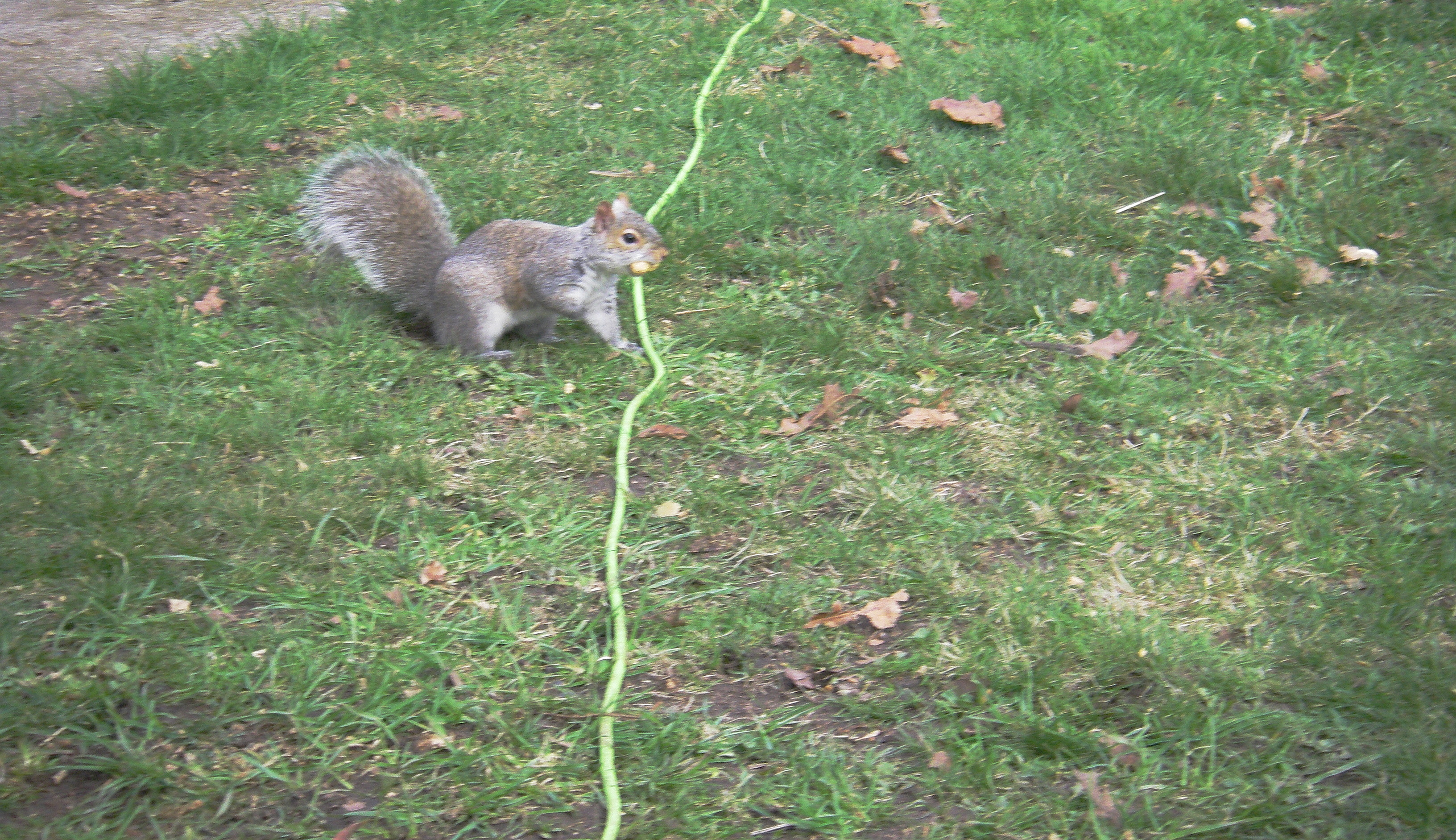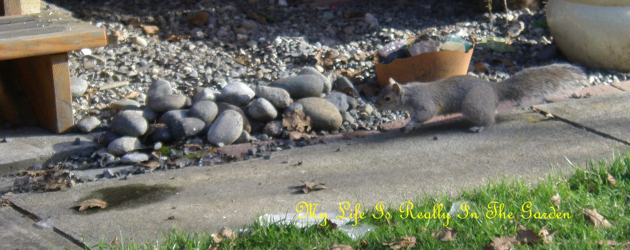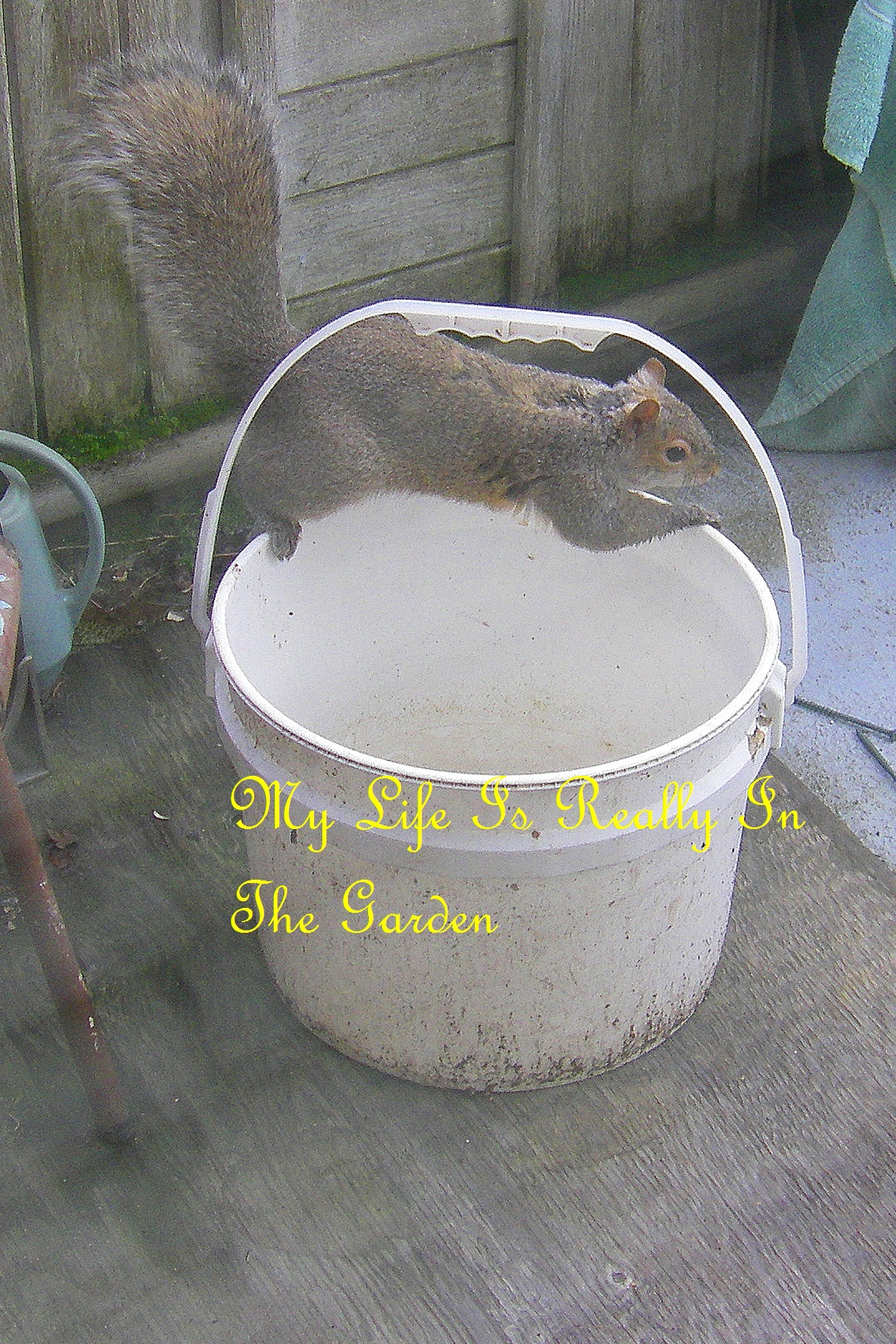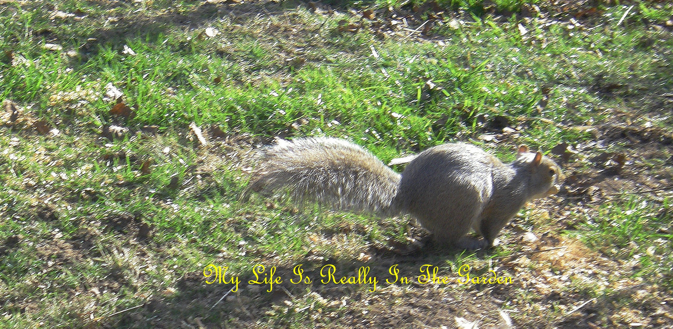 Back at home .. I fed Squirrely some peanuts .. here she looks like she is going to score a touchdown, left arm to the ground, right arm poised to throw the football .. ha ha ha