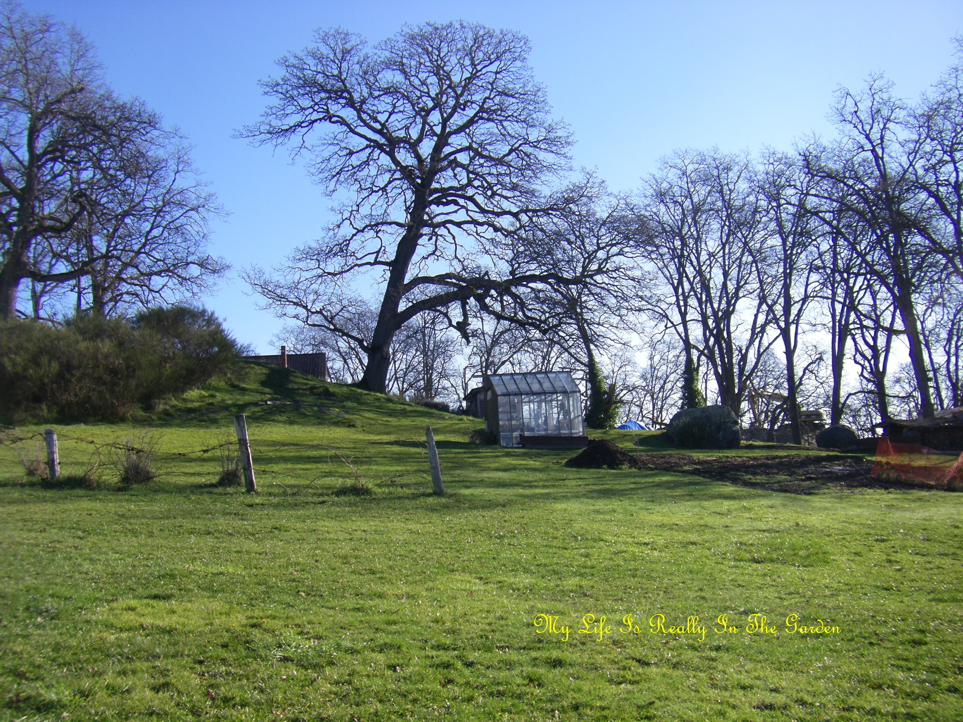 Isn’t this a peaceful sight .. the owner has lovely veggie gardens, he used to keep bees, and see the rustic old fence … and the magnificent trees in the background.