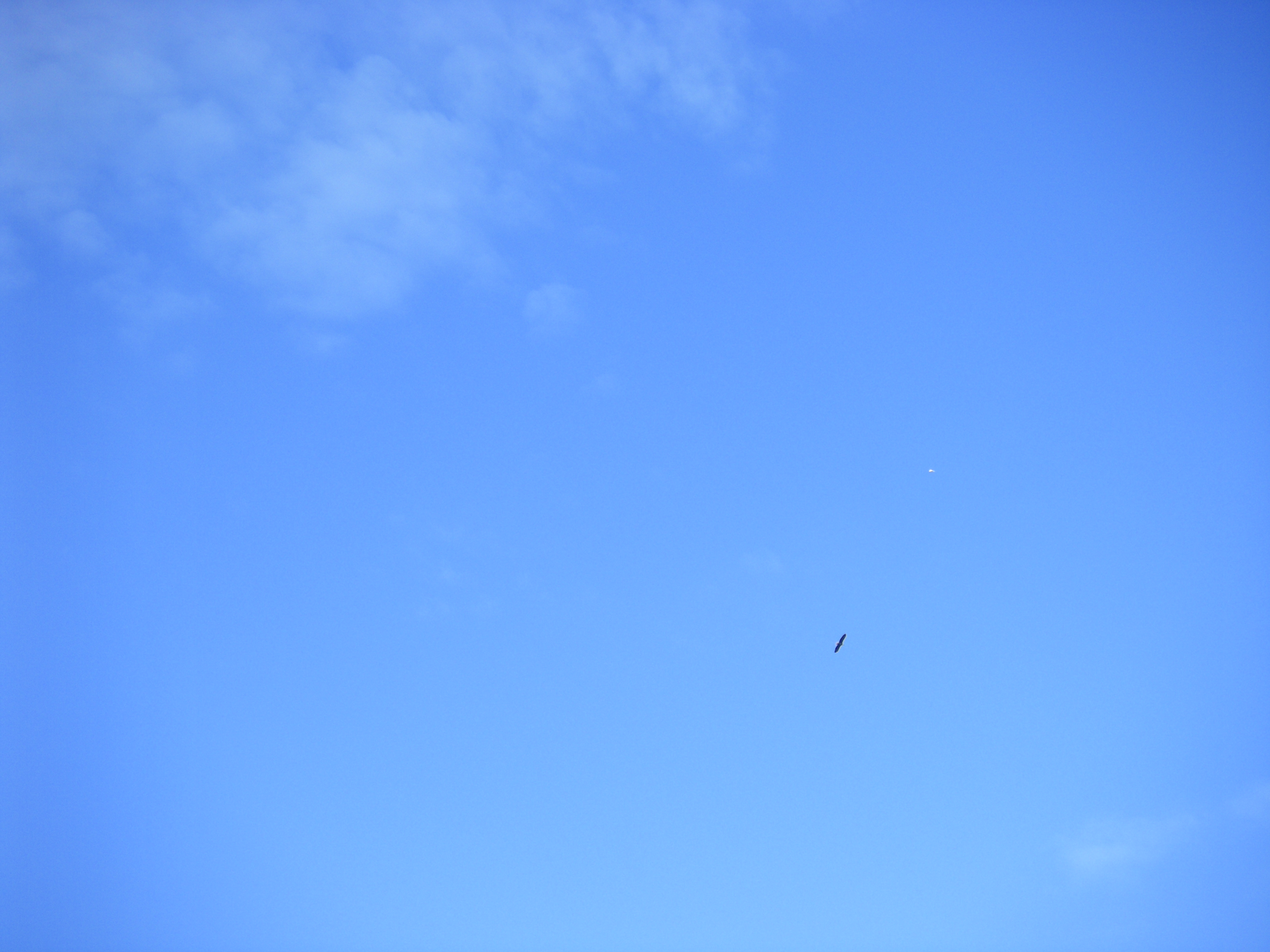 See that little mark up there against the blue .. that is a magnificent eagle. I could see clearly with my binoculars