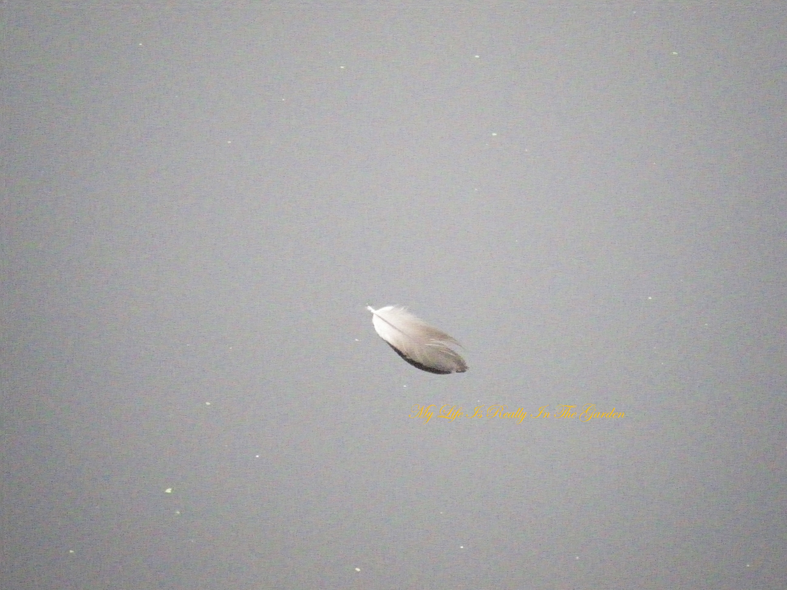Saw a little feather floating on the surface of the water …a gentle gray blended with white …