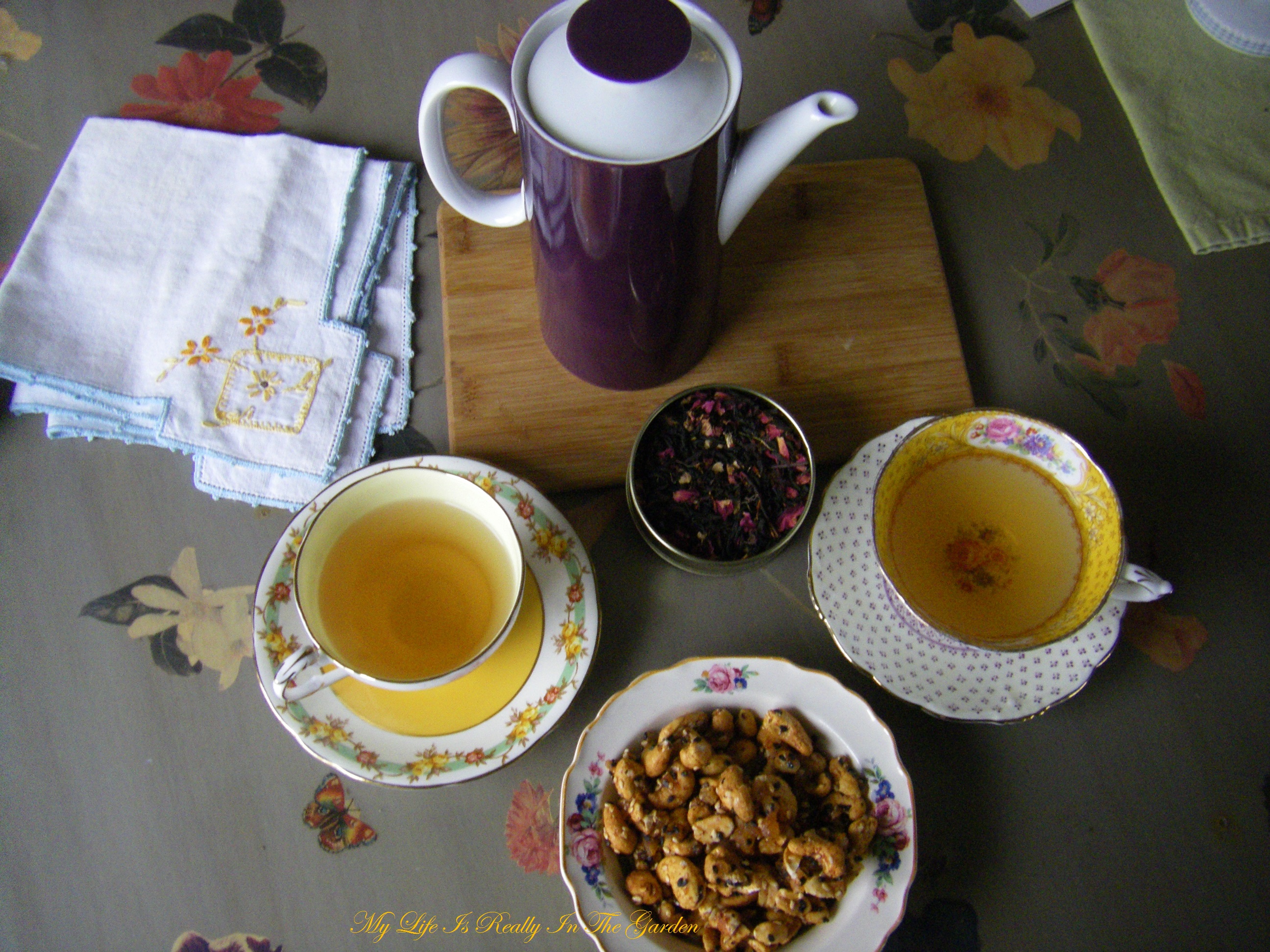 So today .. I went to visit my pal D, for tea in one of her fancy tea cups. She has quite a beautiful collection of the most dainty beautiful items. Doesn’t this look so pretty .. and creative? Well, you are right, it was!