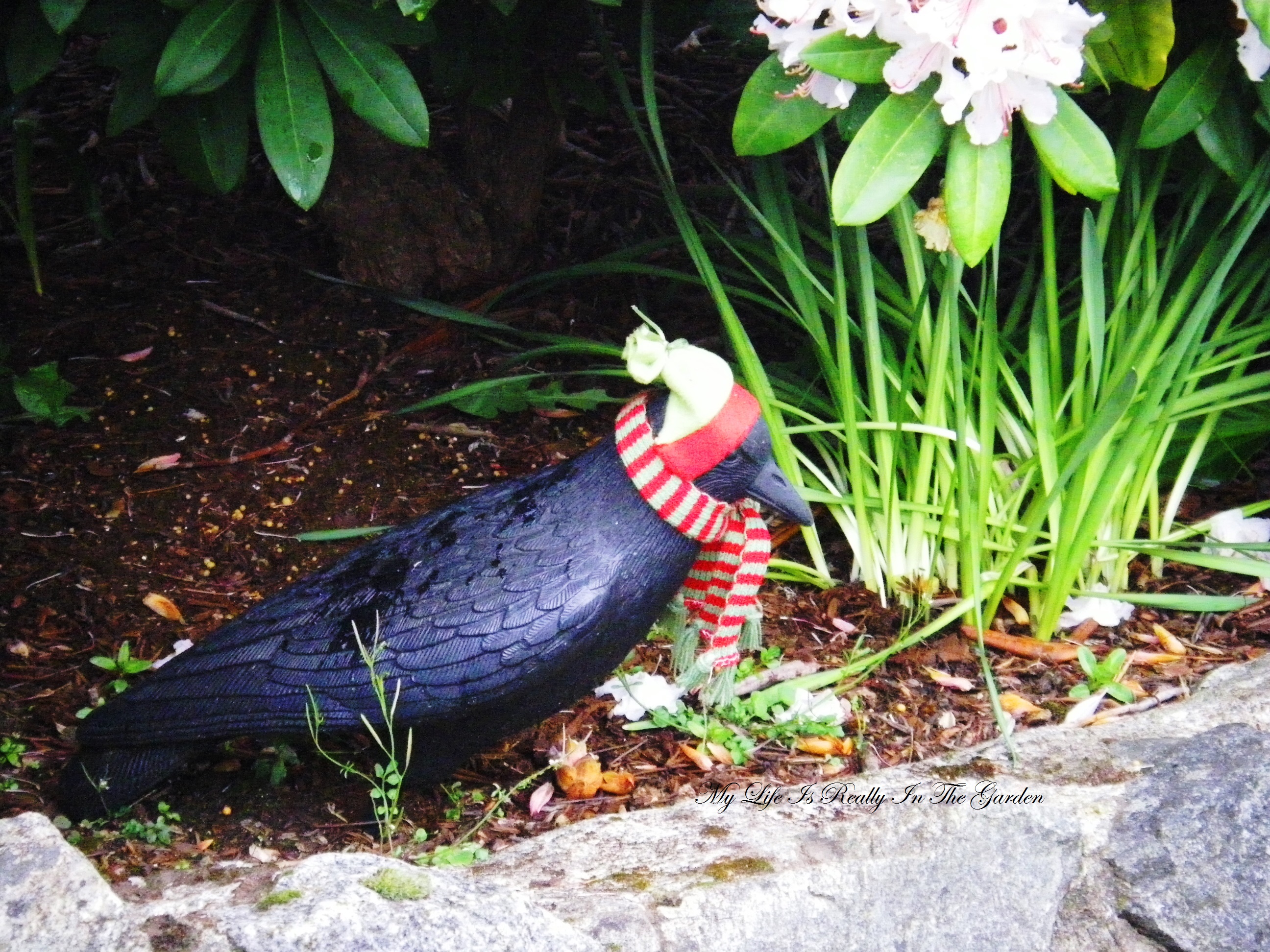 Ha ha .. tucked away in the front yard of one home .. the crow was chilly and so wore his toque and scarf today!