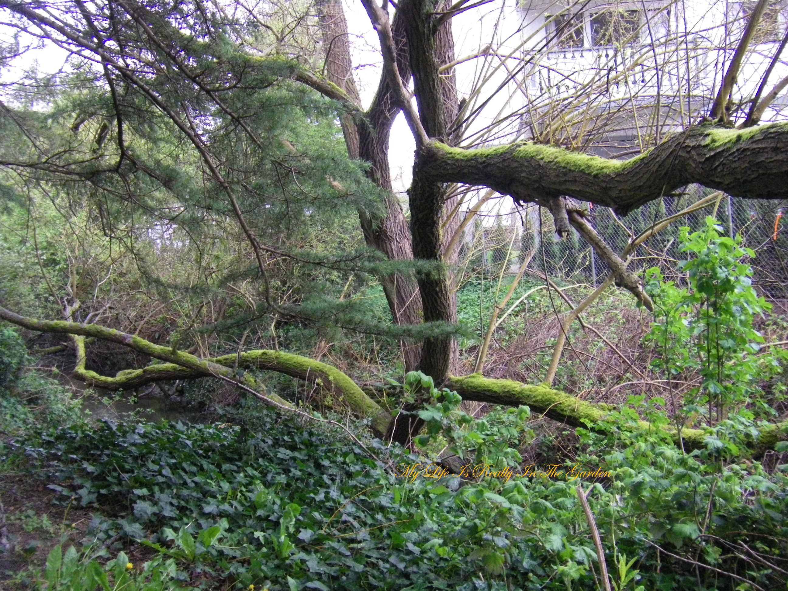 The task is slowly nearing the end. I’ve kept track of our daily adventures and although it seems a very long time ago (beginning of February) as I look over my notes I remember the forgotten tasks. Selecting and taking home 8 huge cedar trees from the grower’s fields (oh wow they were tremendously heavy). Together DH & I carefully unloaded one tree at a time from a lovely trailer that a friend lent us. I love this trailer. Anyway, we’d carefully put one cedar on a tarp and made a pathway of other tarps so we could (ever so slowly) slide one cedar at a time to the back yard. Where we’d dug deep holes for them. Added some magical organic fertilizer to assist the roots in their growth.